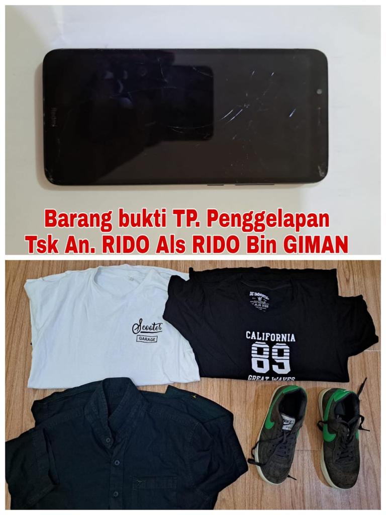 RD alias Rido, dibekuk petugas setelah dilaporkan korban Rainal Rais (27 tahun) alamat Jln Pahlawan Kelurahan Bagan Hulu Kecamatan Bangko, karena tidak mengembalikan uang yang pernah ditransfer dari kios phonesellnya yang terletak di Jln Perniagaan Kelurahan Bagan Kota Kec. Bangko Kab. Rokan Hilir. Minggu 16 April 2023. Pukul 11.00 WIB. Sehingga mengalami kerugian sebesar Rp 17.750.000,-.