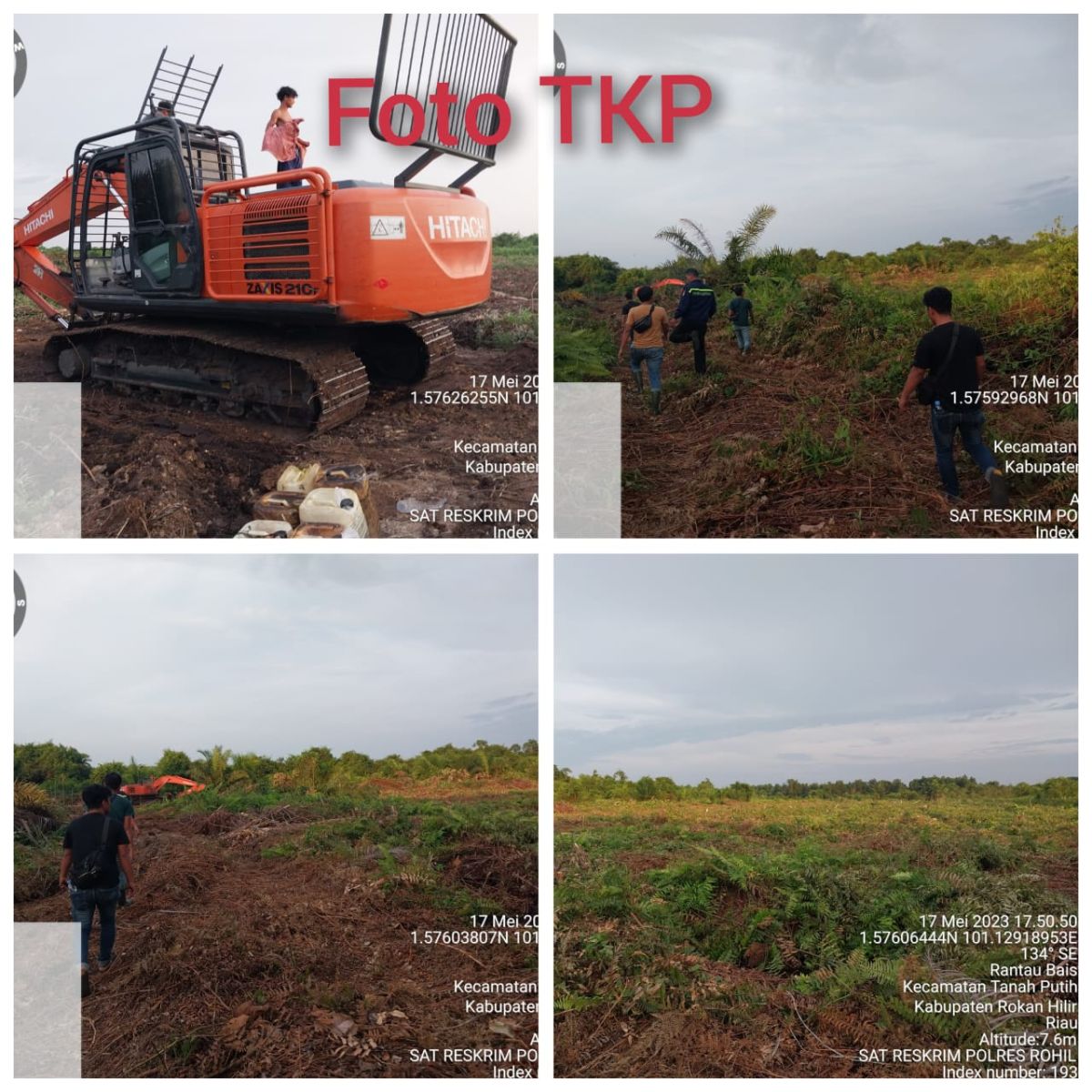 Setibanya di TKP, Tim Sat Reskrim melihat 1 unit alat berat Excavator merek Hitrachi SK 210 warna Orange, dan melakukan interogasi terhadap seorang laki-laki yang ada di alat tersebut yang mengaku bernama saudara Khoir, ianya merupakah Helper dari alat berat tersebut dengan menjelaskan bahwa operator alat berat adalah saudara M. JM alias Jumari. yang mana pengerjaan yang dilakukan yaitu memijak-mijak rumput yang ada dilahan untuk dijadikan lahan perkebunan kelapa sawit.