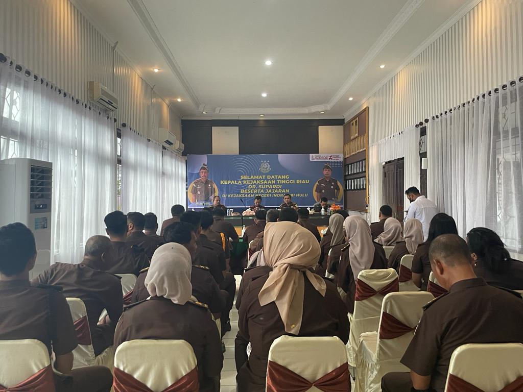 Di Aula Kantor Kejaksaan Negeri Indragiri Hulu Kajati Riau Dr Supardi menyempatkan memberikan arahan kepada seluruh pegawai Kejari Hulu.