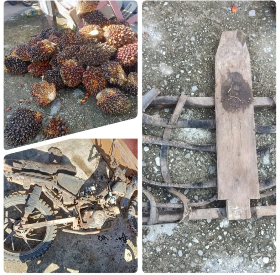 Atas kejadian tersebut pihak Perusahaan mengalami kerugian materil kurang lebih Rp.1.800.000,- kemudian sekira pelapor membawa pelaku beserta barang bukti berupa: 61 Tandan buah segar kelapa sawit, 1 unit sepeda motor merk langsir tanpa Nopol, buah keranjang along along Ke polsek Bangko dan selanjutnya pelapor melaporkan kejadian tersebut. Selanjutnya Polsek Bangko menahan dan menindak saudara pelaku dengan menggunakan Pasal 364 KUHPidana, "jelasnya. (Manik/MR)