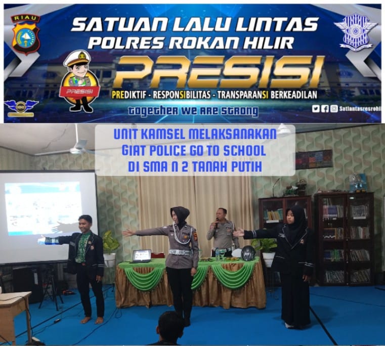 Memberikan paparan edukasi tertib berlalu lintas menuju pelajar yang berkeselamatan, khususnya SMAN 2 Tanah Putih.