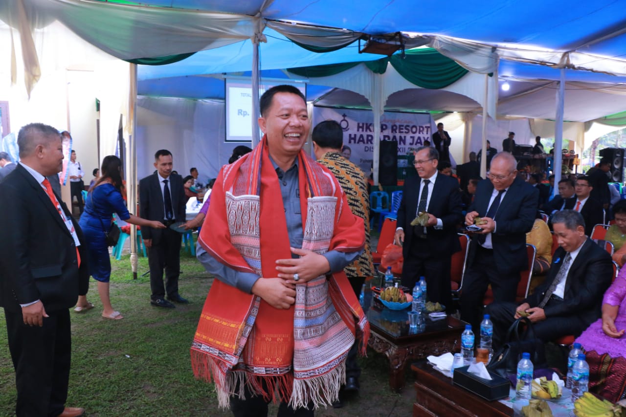 Sebagai bentuk apresiasi atas kehadiran Pemerintah kota Pekanbaru, Praeses Hantus Hutapea tak luput mengucapkan terimakasih kepada PJ Walikota Pekanbaru atas kepeduliannya hadir dalam pesta undangan peresmian gereja HKBP Resort Harapan Jaya.