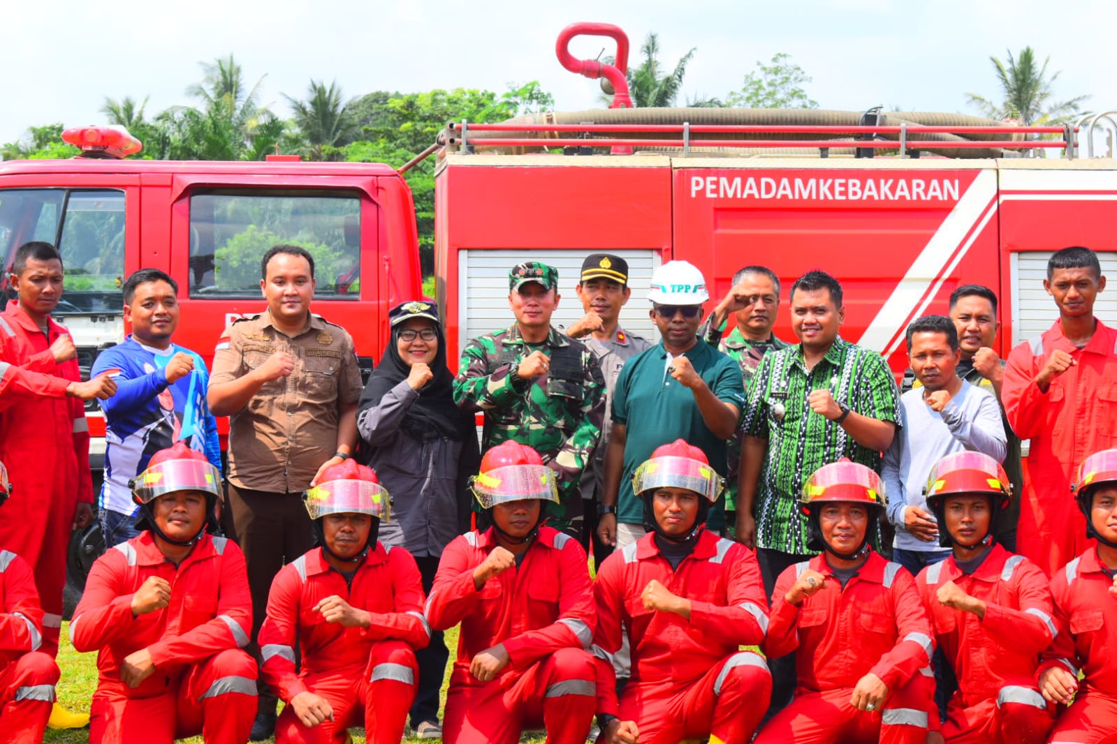 Setibanya di Kantor PT TPP di Kecamatan Pasir Penyu, Dandim bersama Forkopimda langsung mengecek kesiapan peralatan dan tim Karhutla di perusahaan yang bergerak di bidang perkebunan kelapa sawit itu.