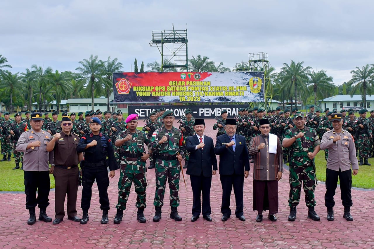 “Mari tegakkan hati, luruskan niat, bahwa tugas mulia ini ialah perwujudan ibadah kepada Allah SWT ", kata Pj Bupati kepada seluruh prajurit Yonif RK 111/KB.