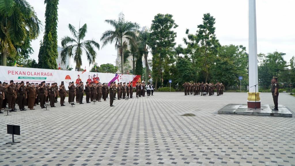 MimbarRiau.com, Pekanbaru -- Wakil Kepala Kejaksaan Tinggi Riau Hendrizal Husin, SH., MH selaku Penerima Apel Kerja Pagi yang diikuti oleh Para Asisten, Para Koordinator, Para Kasi dan Jaksa Fungsional beserta seluruh pegawai Kejaksaan Tinggi Riau. bertempat di Halaman Kantor Kejaksaan Tinggi Riau, Senin (10/723)