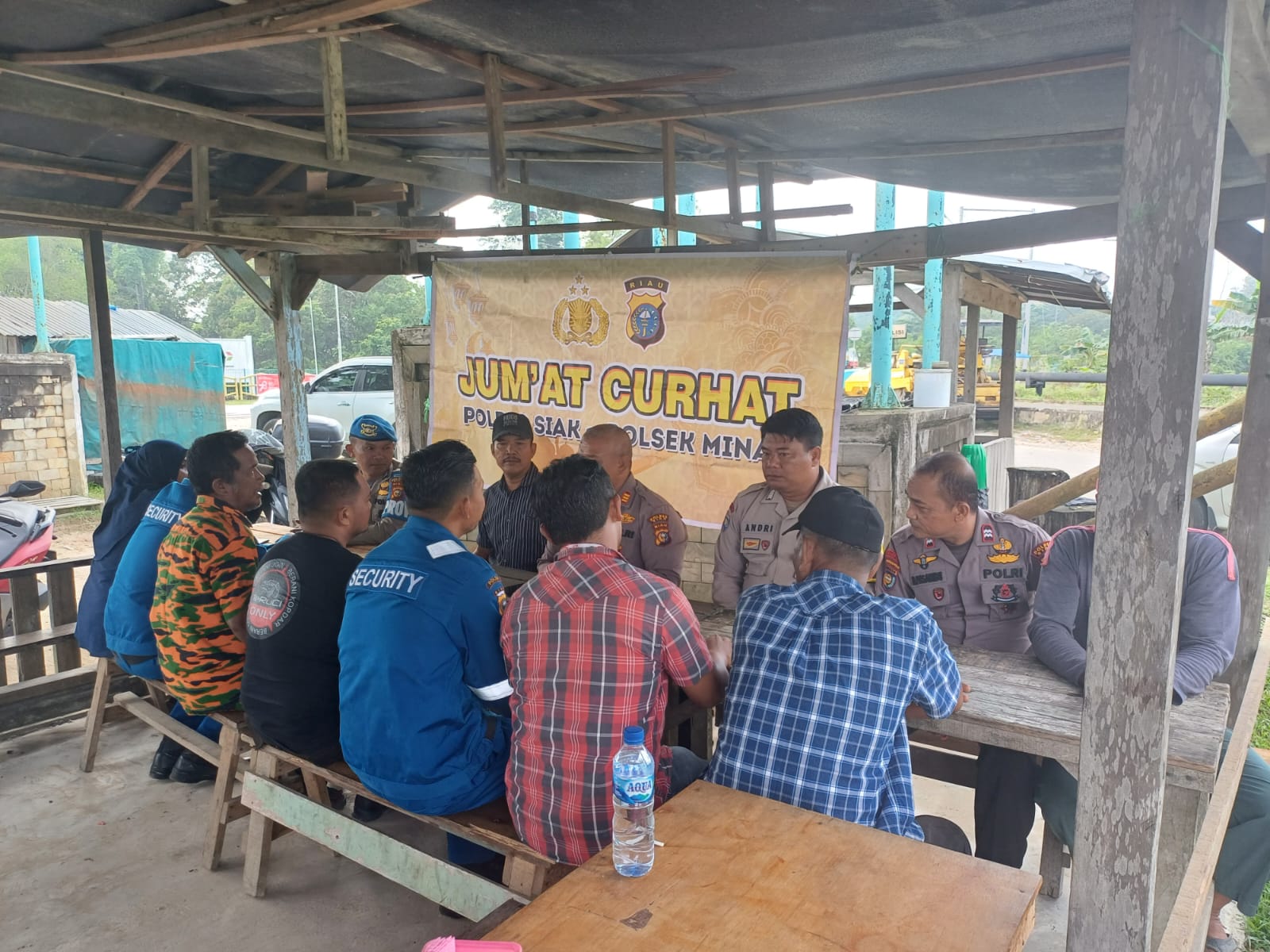 Adapun tujuan dilaksanakannya kegiatan Jumat Curhat bersama Kanit Binmas,Panit dan Bhabinkamtibmas Polsek Minas yaitu untuk menunjukkan kehadiran Polri ada ditengah masyarakat dan berinteraksi langsung dengan Masyarakat serta mendengarkan apa saja permasalahan yang dihadapi oleh masyarakat di Kec. Minas dan memberikan pesan - pesan Kamtibmas agar bersama- sama menjaga situasi kamtibmas yang kondusif di Wilayah Kecamatan Minas.