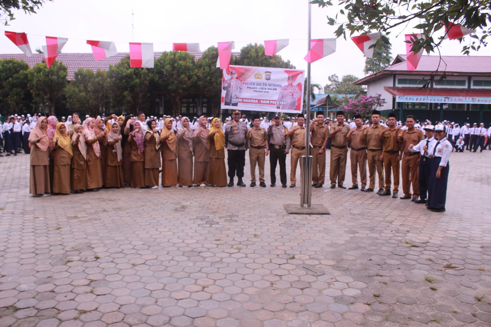Akp Januar Eddwin Sitompul, S.H., M.H menjadi pembina upacara dalam rangka kegiatan Police Goes To School Polres Siak.