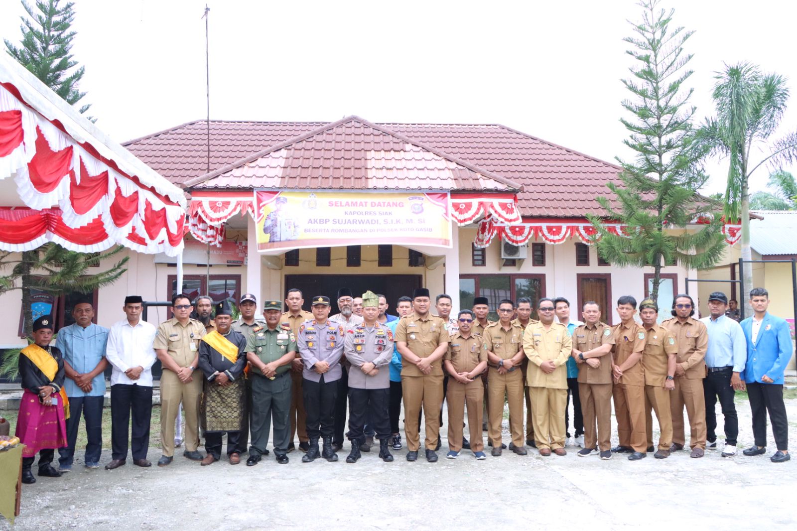 Siak, Mimbarriau.com -- Kapolres Siak AKBP Asep Sujarwadi, S.I.K, M.S.I bersama Ketua Bhayangkari Cabang Siak Ny. Octo Asep beserta rombongan pejabat utama Polres Siak dan pengurus Bhayangkari melaksanakan kunjungan kerja ke Polsek Koto Gasib. Senin (21/8/2023).