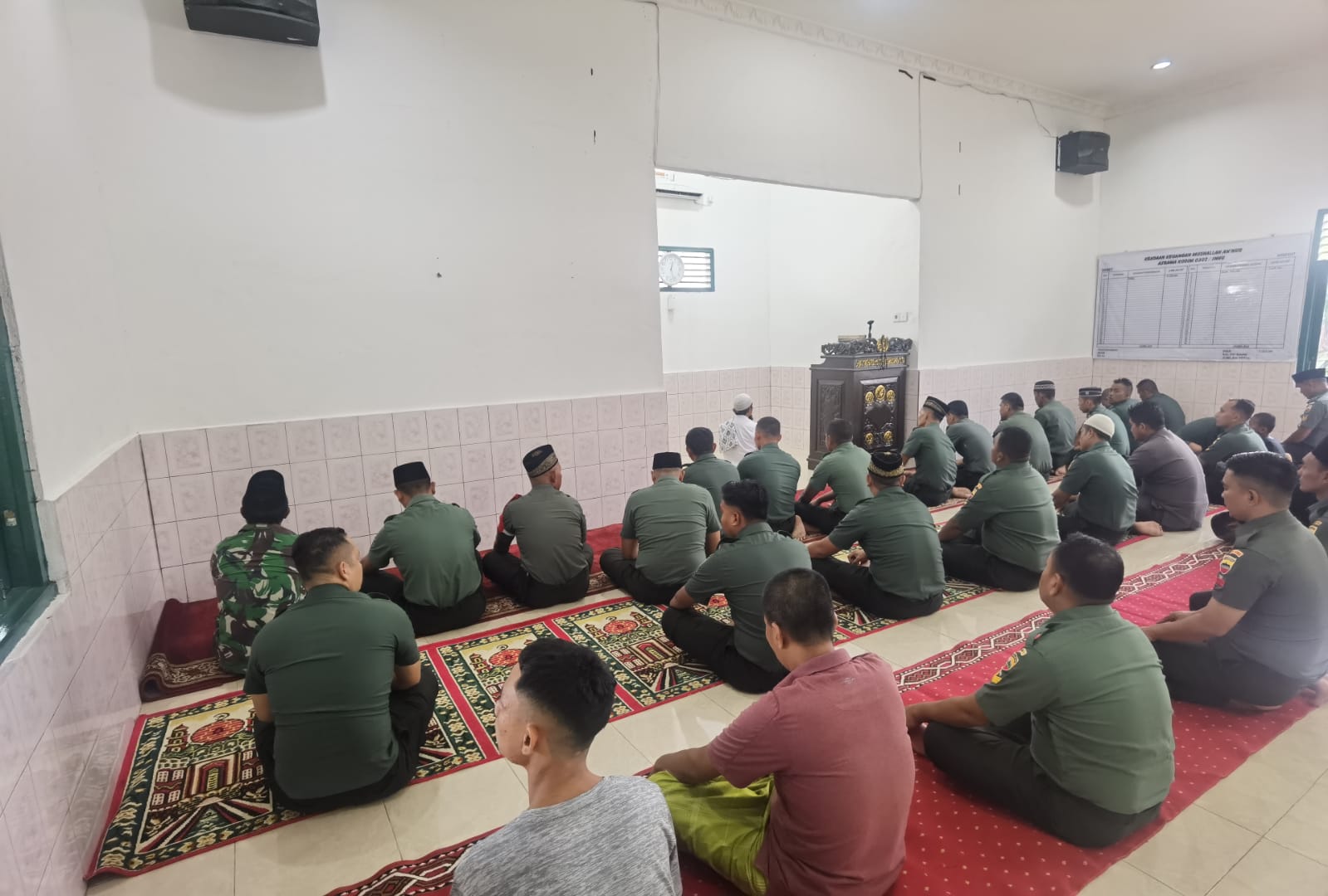 Tampak Komandan Kodim 0302/Inhu, Letkol Kav Dani Prasetyo Wibowo S.Sos M.l.P beserta Anggota dan masyarakat sekitar Makodim 0302/Inhu , Jl Letjen R Suprapto Kel Sekip Hulu Kec Rengat Kab Inhu,  Selasa 05-09-2023 secara bersama sama melaksanakan Sholat Istisga. (Prasetyo/MR)