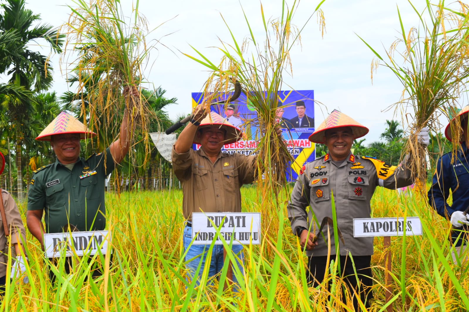 Hadir pada kegiatan panen raya tersebut Ir.H.Hendrizal M,Si ( Sekda Kab. Inhu ). AKBP Dody Wirawijaya, S.I.K.( Kapolres Inhu ),Mayor Inf Kabul ( Kasdim 0302/Inhu ),Paino SP ( Asisten II Perekonomian Dan Pembangunan Kab.Inhu ).,Erqusfian, S.Sos ( Kadis Perindustrian Dan Perdagangan Kab.Inhu ).,Dedi Dianto ,SP ( Kadis Pertanian Dan Perikanan Kab. inhu ) Poppy Bainurita ,SE ( Camat Rengat ). Dedi Roni SP ( Kades Pasir Kemilu ) Anggota Kelompok Tani Mekar Sari Desa Pasir Kemilu serta Masyarakat Pasir Kemilu.
