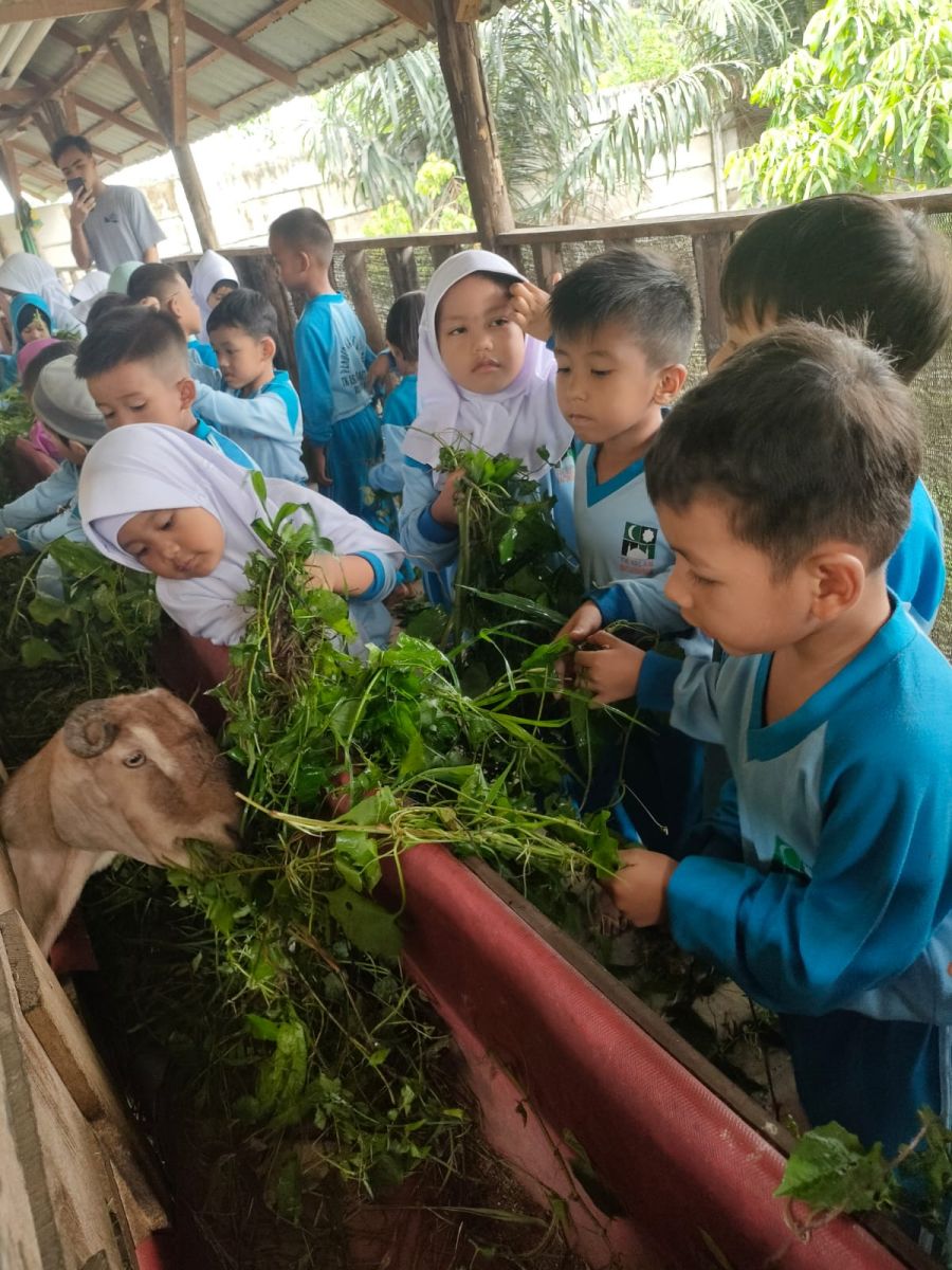 Murid dikenalkan dengan berbagai tumbuhan, seperti sayur kangkung, anggur serta memberi pakan kambing.