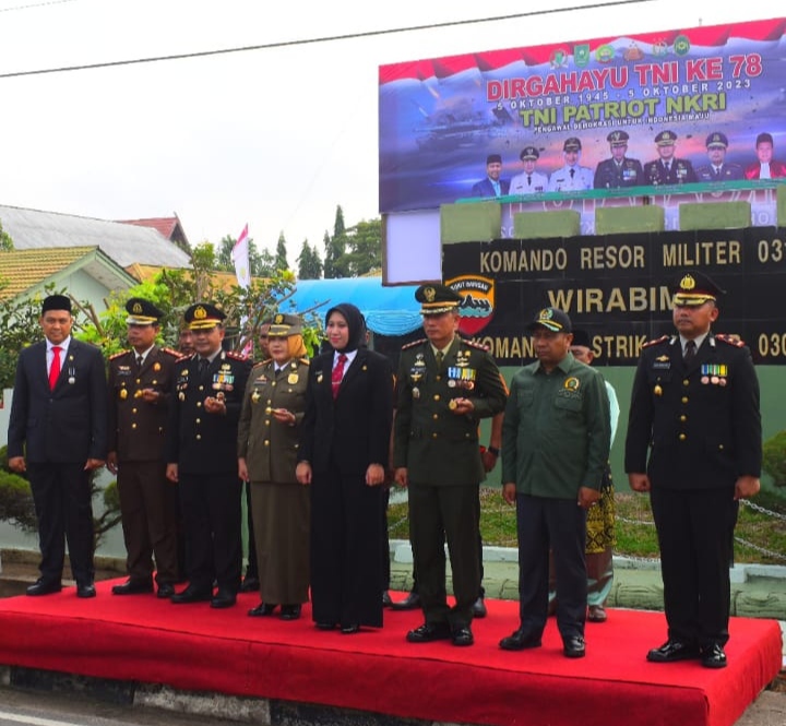 Hadir pada upacara HUT TNI Ke-78 Letkol Kav. Dani Prasetyo Wibowo, S.Sos., M.I.P ( Dandim 0302 / Inhu ).juga dihadiri oleh AKBP Dody Wirawijaya, S.I.K (Kapolres Indragiri Hulu ),Rezita Meylani Yopi, SE ( Bupati Kab. Inhu),Elda Suhanura, SH, MH