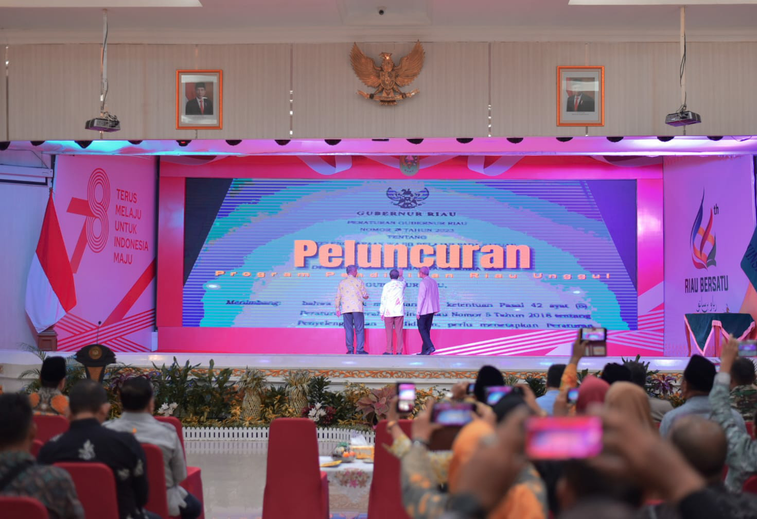 Sementara itu Gubernur Riau dalam sambutannya mengatakan dalam mendukung bidang pendidikan di Bumi Lancang Kuning, Pemerintah Provinsi (Pemprov) Riau terus memiliiki langkah dan upaya agar anak-anak dapat mempunyai ilmu pengetahuan. Satu di antaranya seperti tertuang dari Peraturan Gubernur (PERGUB) yang mengatur tentang wajib belajar 12 tahun.