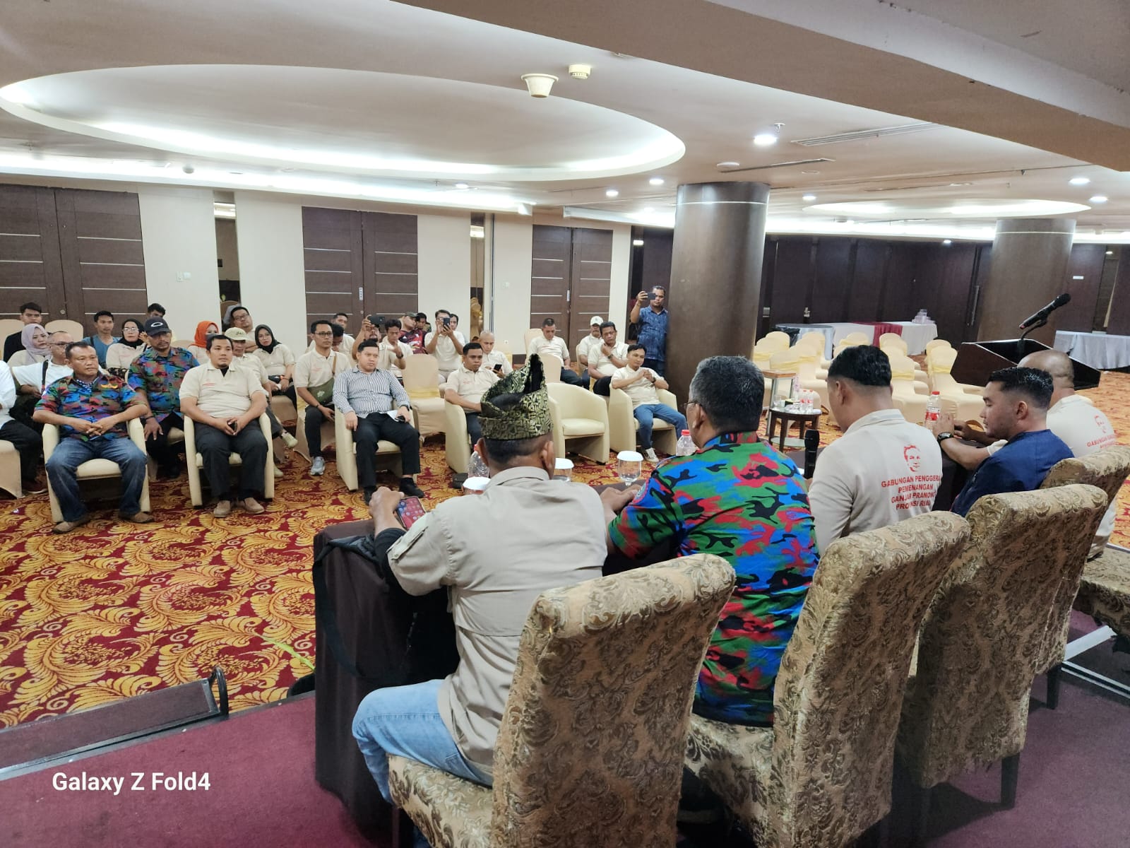 Iwan Pansa Selaku Ketua Gabungan Pergerakan Pemenangan Ganjar Pranowo di Provinsi Riau langsung mengadakan Konferensi Pers Deklarasi Pemenangan Bersama Organisasi yang juga turut hadir mulai dari Organisasi Kepemudaan, Mahasiswa, hingga Organisasi Buruh, di Hotel Grand Central Pekanbaru, Rabu (18/10/2023).