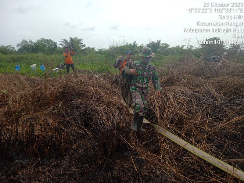 Hingga saat ini terus melakukan upaya pemadaman kebakaran hutan dan lahan ini, Prajurit Koramil 01/Rengat dan KPBD yang juga dibantu oleh Masyarakat untuk memadamkan api yang terjadi di lahan seluas sekitar 102 Ha, hangus terbakar.