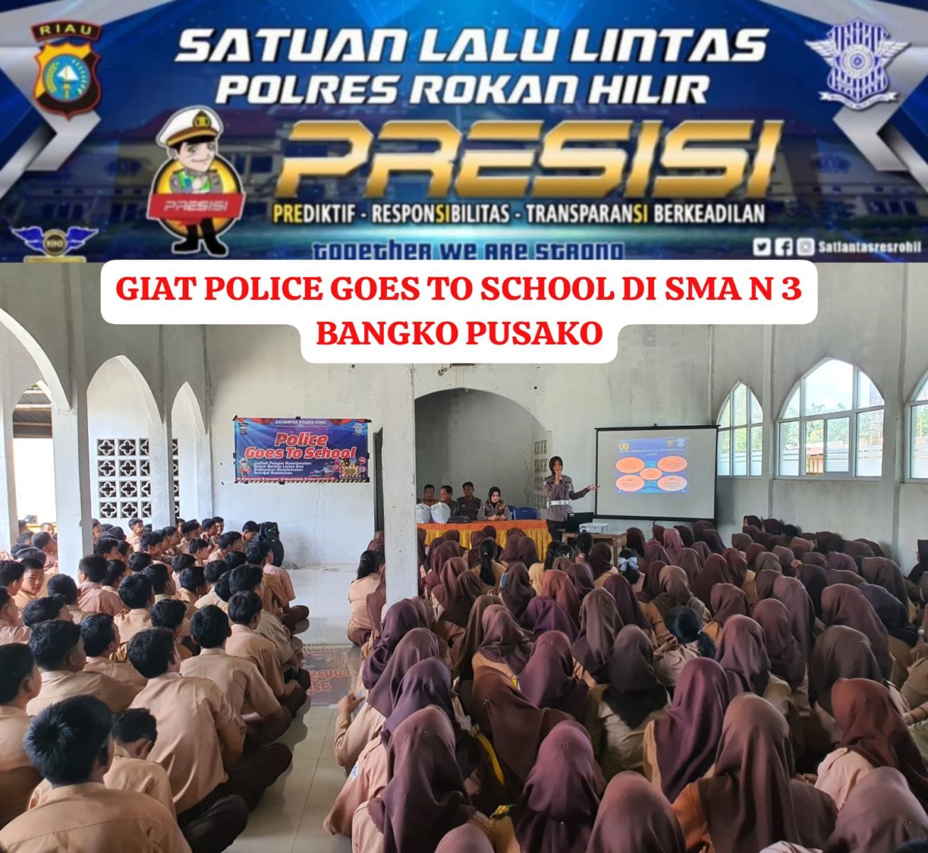 ROHIL, MimbarRiau.com -- Kembali Satlantas Polres Rohil laksanakan kegiatan Police Go To School atau himbauan dan sosialisasi di SMA N 3 Bangko Pusako, Kabupaten Rohil, Rabu (08/11/2023) Pukul 10.00 Wib.