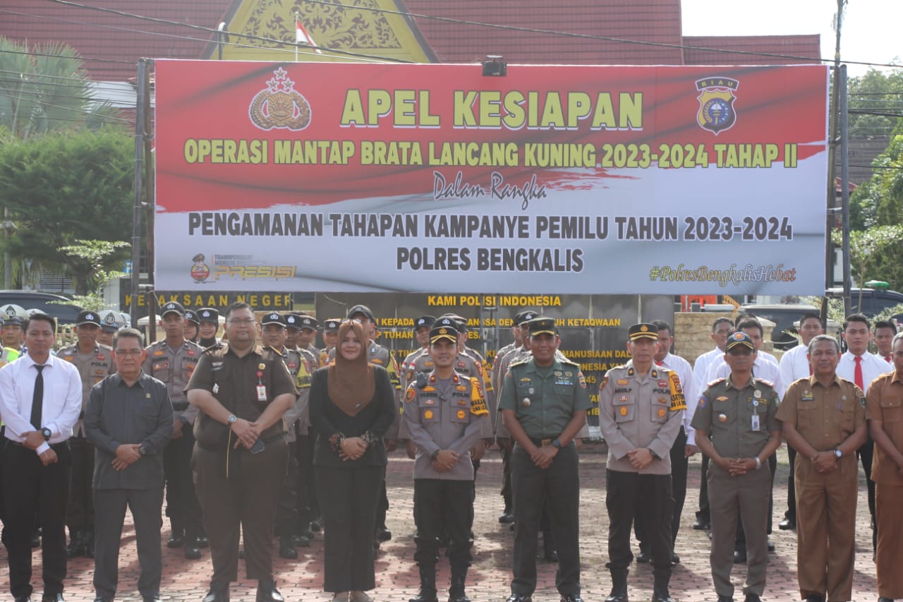 Bengkalis, MimbarRiau.com -- Polres Bengkalis menjadi saksi pelaksanaan Upacara Apel Gelar Pasukan Operasi Mantap Brata Lancang Kuning 2023. Kegiatan ini dilaksanakan dalam rangka pengamanan kampanye Pemilihan Umum Tahun 2024 di wilayah hukum Polres Bengkalis. Pada hari Senin, 28 November 2023, pukul 08.30 WIB, bertempat di Halaman Mako Polres Bengkalis.