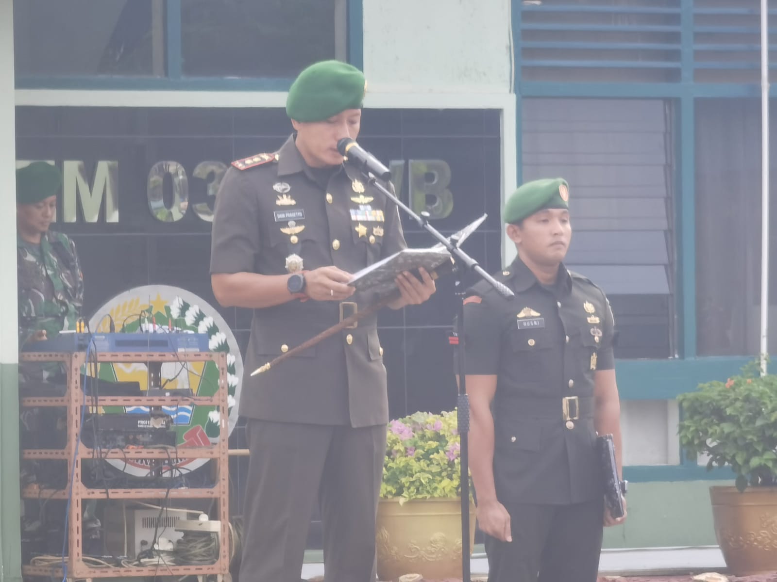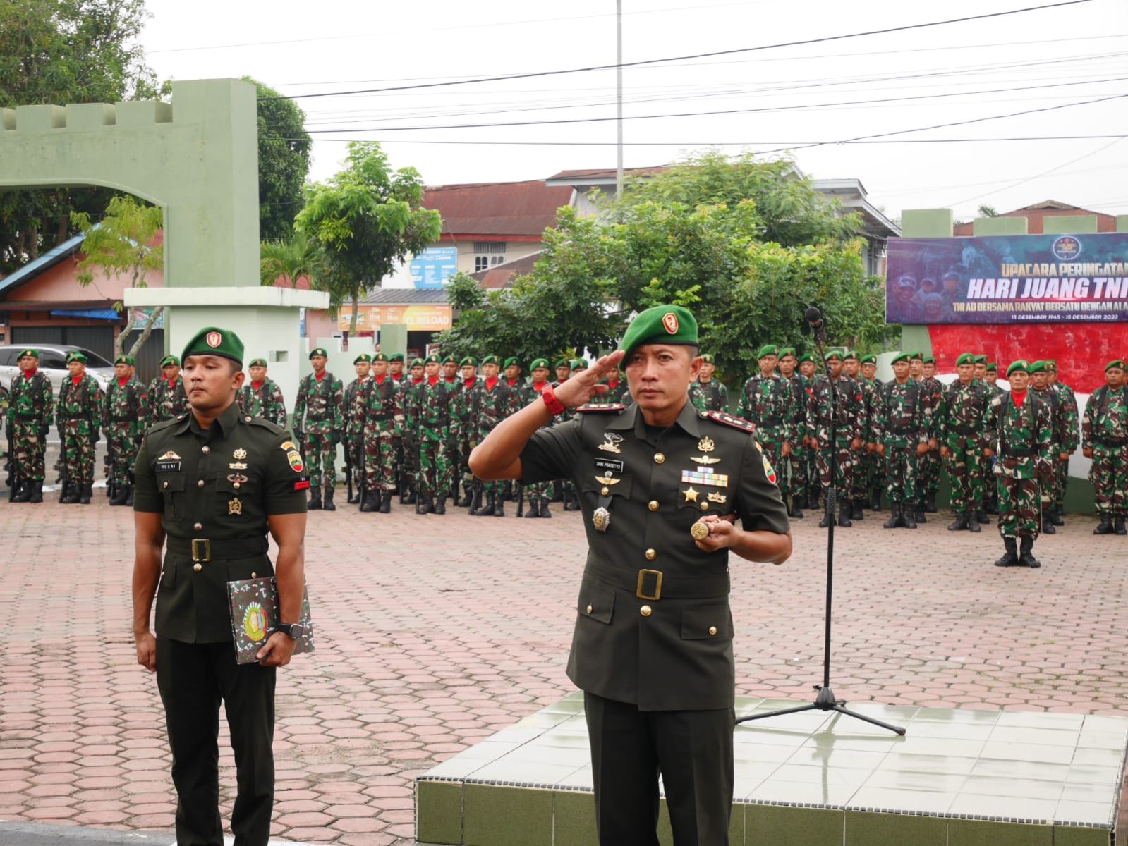 Pelaksanaan Upacara Memperingati Hari Juang Kartika TNI - AD di Lingkungan TNI Jajaran Korem 031/WB, bertindak sebagai Inspektur Upacara Dandim 0302/Inhu Letkol, Kav, Dani Prasetyo Wibowo, S.Sos., M.I.P Selaku Inspektur Upacara, dan Kapten Inf Aplison Selaku Komandan Upacara, Kapten Inf H.B. Sitepu Selaku Perwira Upacara, Sertu Riza Efendi Selaku Pengucap sapta marga.