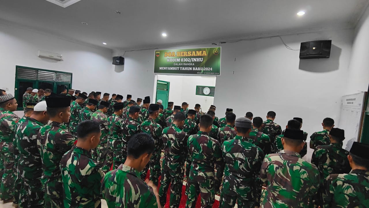 Mimbarriau.com, Rengat -- Menyambut datangnya tahun baru, Kodim 0302/Inhu menggelar acara sholat berjamaah dan doa bersama di Masjid an-nur Makodim 0302/Inhu. Jln melur kelurahan Sekip Hulu Kecamatan Rengat Kabupaten Indragiri Hulu yang di laksanakan pada Minggu sore (31/12/2023).