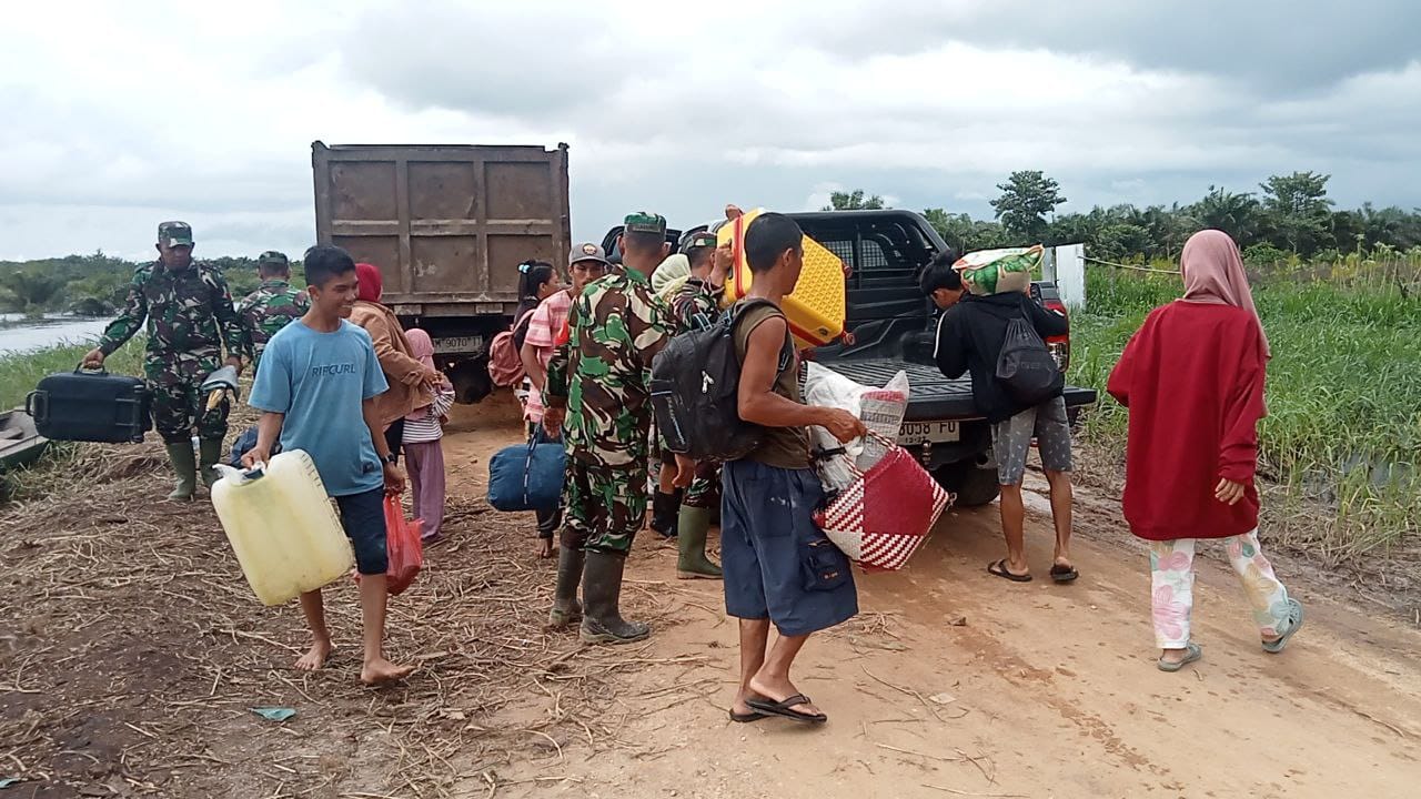 Tidak Ada Tanda Banjir Surut, Ratusan Karyawan PT. SBL Dievakuasi Oleh Anggota Koramil 01/Rengat Kodim 0302/Inhu