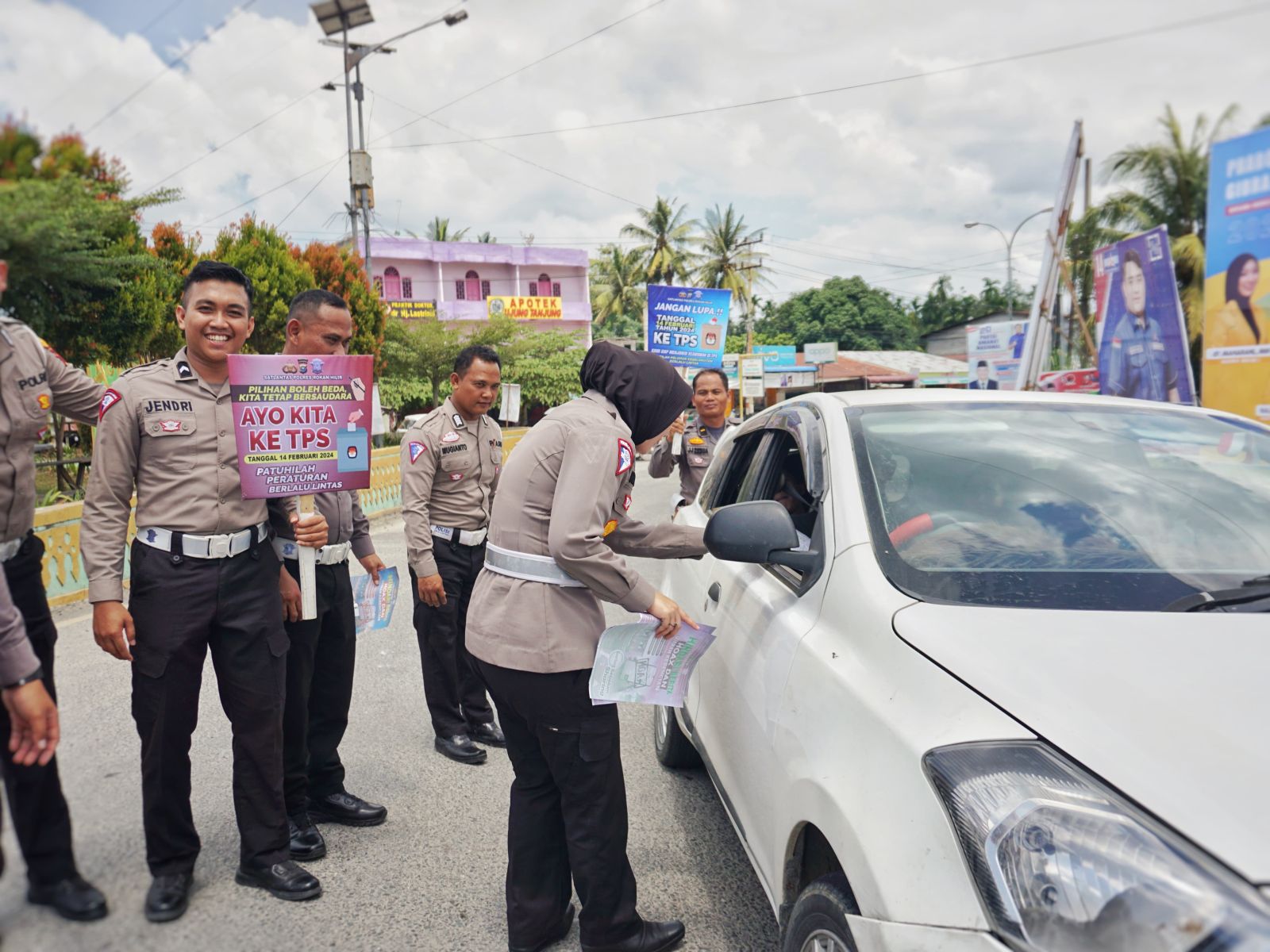 Sat Lantas membagikan 200 Lembar Brosur himbauan Pemilu Damai, Penyuluhan Lingkungan ( Penling ) sosialisasi Pemilu damai di tempat keramaian serta Sosialisasi agar menyalurkan suara, tidak golput, mengindari hoax, isu SARA dan ujaran kebencian Menjelang Pemilu 2024," terang Iptu Yulanda Alvaleri.