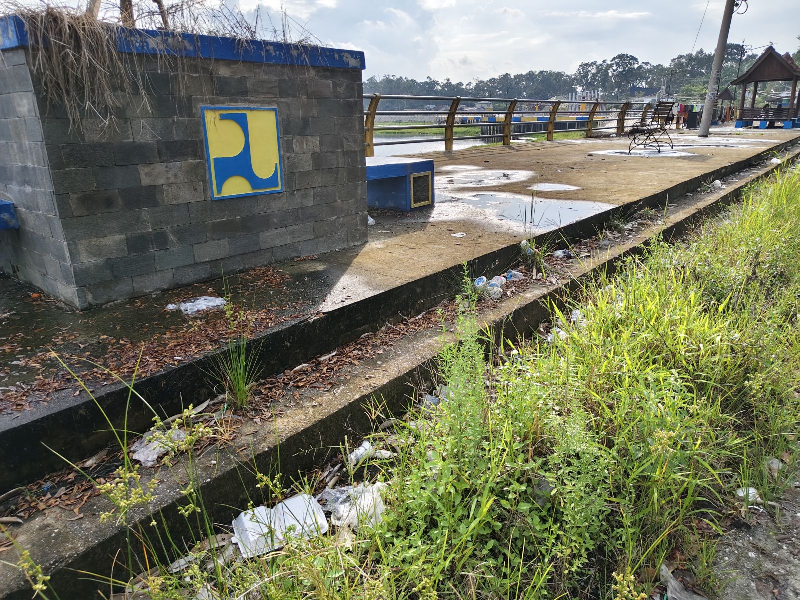 Pantauan di lapangan menunjukkan, beberapa fasilitas yang baru dibangun mulai terlihat kotor dan tidak terurus. Sampah domestik dan dedaunan menumpuk di beberapa sudut, sementara area publik seperti jalan inspeksi dan pondok-pondok santai tampak minim sentuhan pemeliharaan rutin.