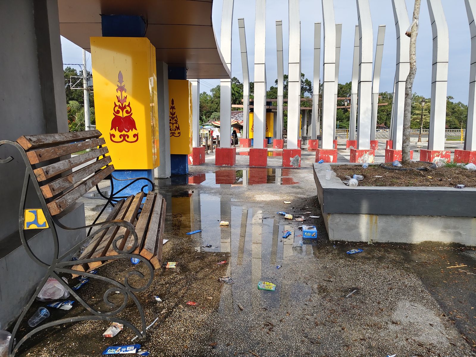 Setelah pembangunan infrastruktur yang megah, termasuk penataan kawasan, anjungan, hingga Kantor Pengamat, kondisi kebersihan tempat wisata ini dilaporkan tidak terawat dengan baik.