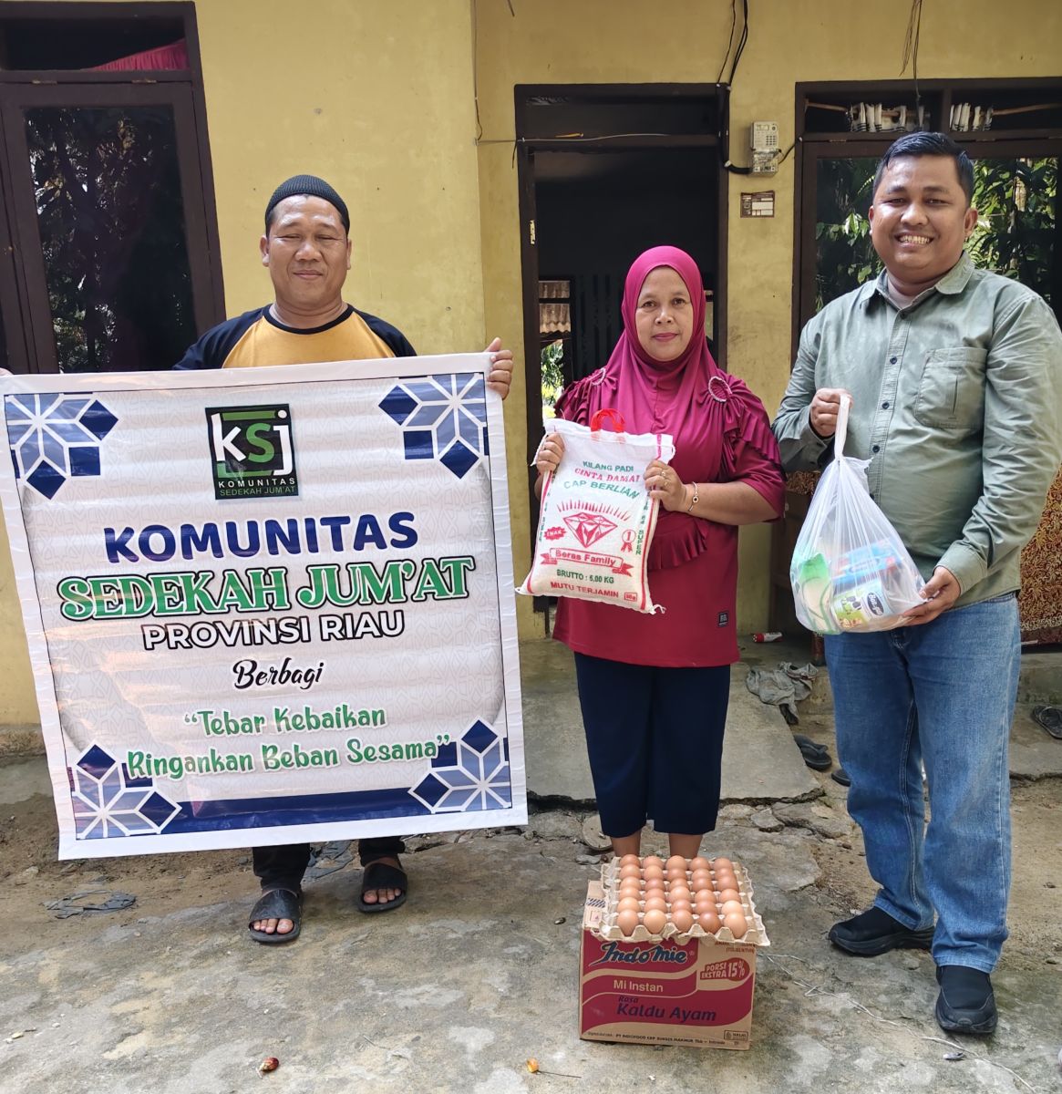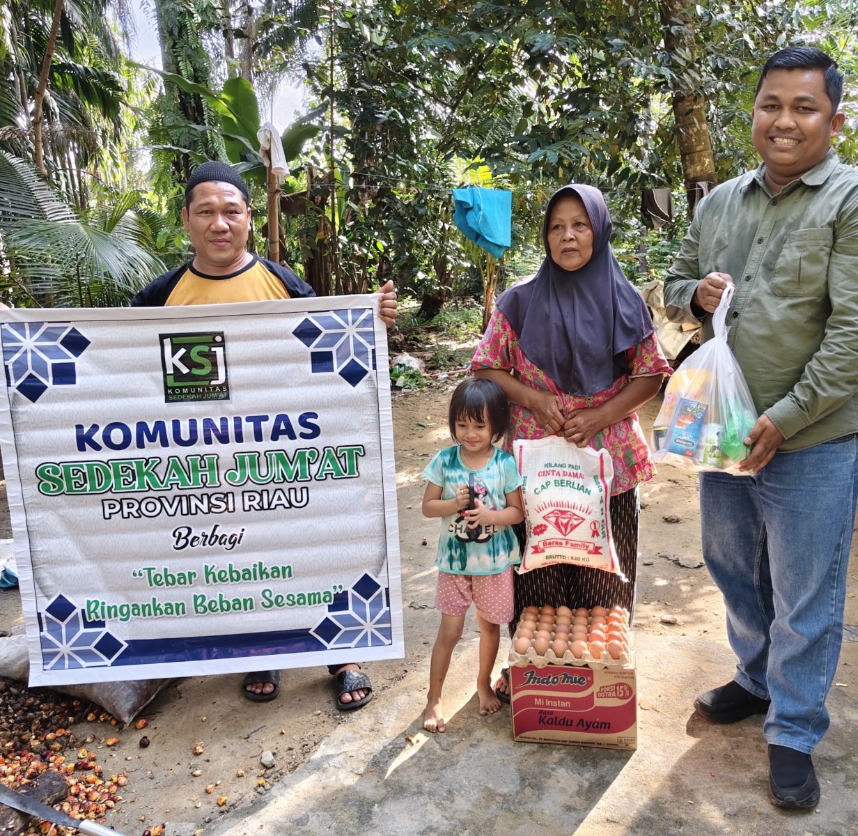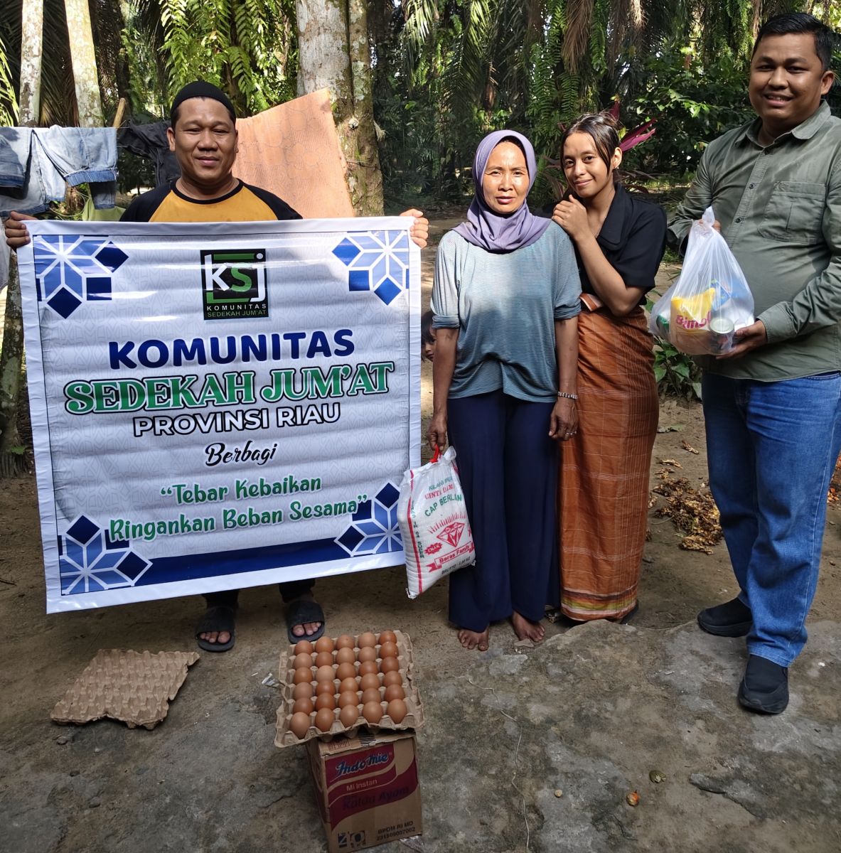 Selain dukungan dari Anto Sontang, kegiatan berbagi Jumat kali ini juga mendapat support dari Kanda Budi Surlani dan istri, seorang Aparatur Sipil Negara (ASN) yang bertugas di Kabupaten Pelalawan dan Provinsi Riau, menambah semangat dan jangkauan penyaluran bantuan.