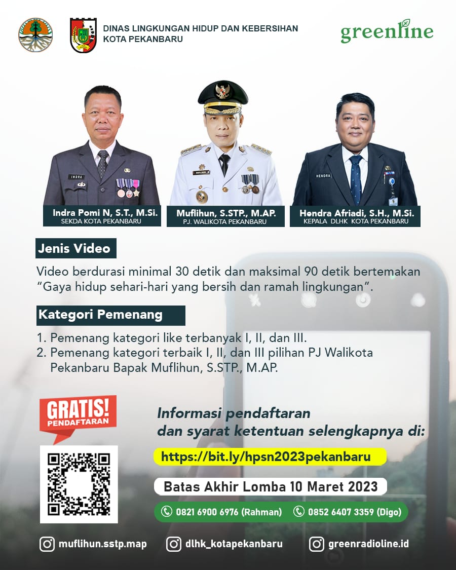 MimbarRiau.com, Pekanbaru - Dinas Lingkungan Hidup dan Kebersihan (DLHK) Kota Pekanbaru menggelar lomba pembuatan Video Instagram Green Lifestyle mulai 1 Maret hingga 10 Maret 2023.
