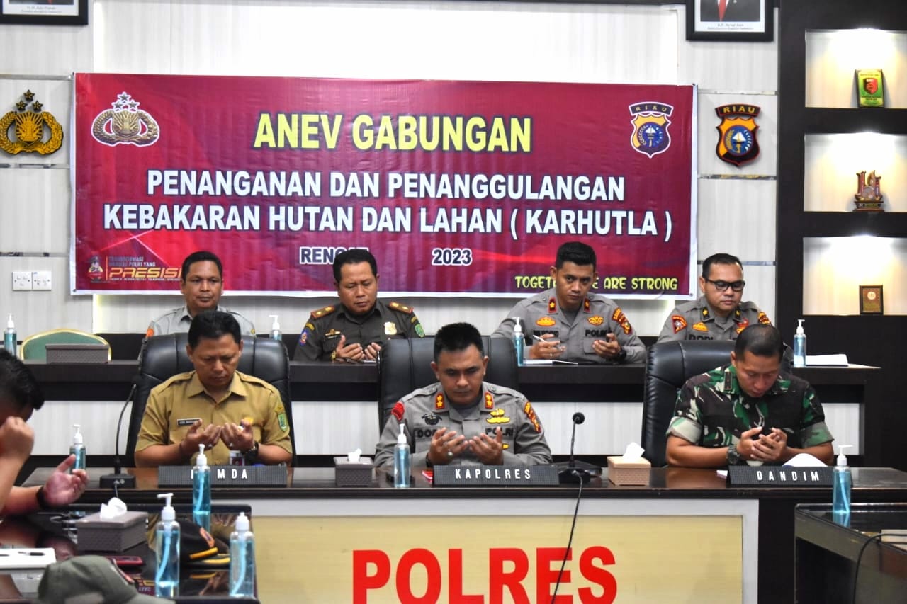 Rapat Anev (analisa evaluasi) Gabungan Karhutla tahun 2023 dilaksanakan di Mapolres Inhu diruang Sanika SatyaWada Polres Inhu, Senin 27 Maret 2023, diikuti oleh sejumlah Pejabat dilingkungan Pemerintah Daerah dan Forkopimda dalam meghadapi potensi bencana karhutla khusunya Di Indragiri Hulu.