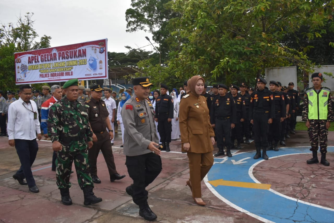 MimbarRiau.com, Inhu -- Kepolisian Resor (Polres) Indragiri Hulu (Inhu), Polda Riau melaksanakan apel gelar pasukan Operasi Ketupat Lancang Kuning (LK) 2023 dengan tema "Mudik Aman Berkesan" berlangsung cukup khidmat.